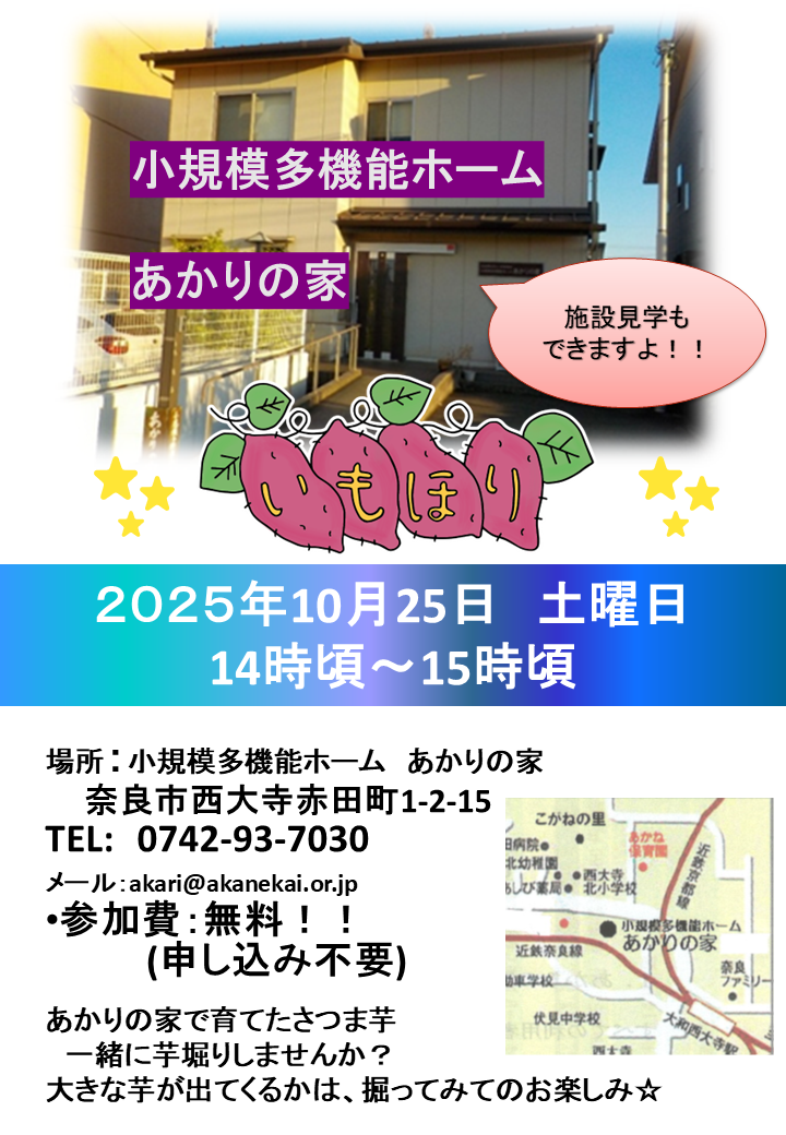 10月25日 土曜日あかりの家駐車スペースにていもほりを行います。