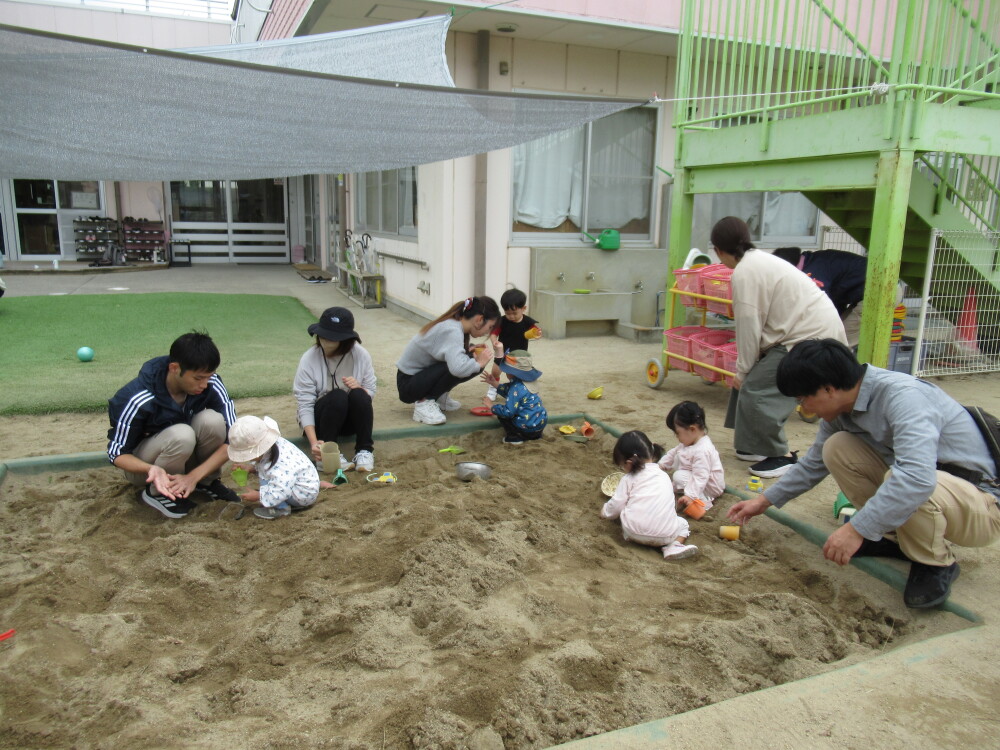 今日砂場遊びをはじめてしたお子さんもいましたが、興味深々で、すぐに遊び始めました。