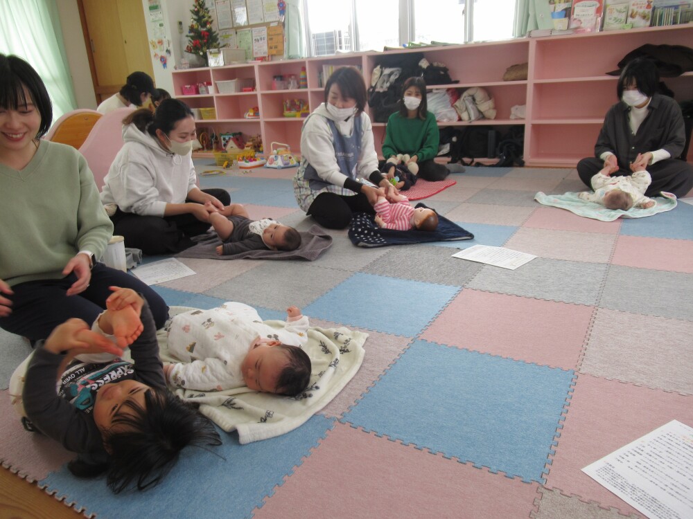 赤ちゃんたちは、ママの歌に耳を傾けながら、気持ち良さそうにマッサージされていました♪