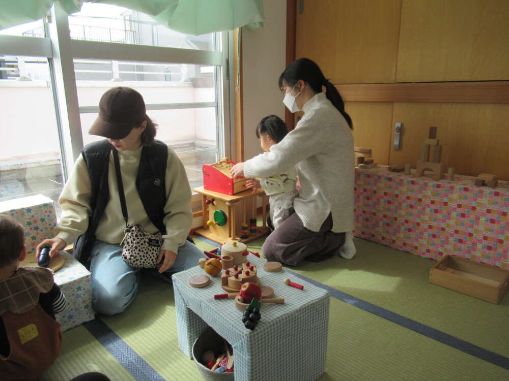 今日は、おもちゃで自由に遊びながら、子どもの成長に合わせたおもちゃの遊び方や選び方など、学びになるお話を