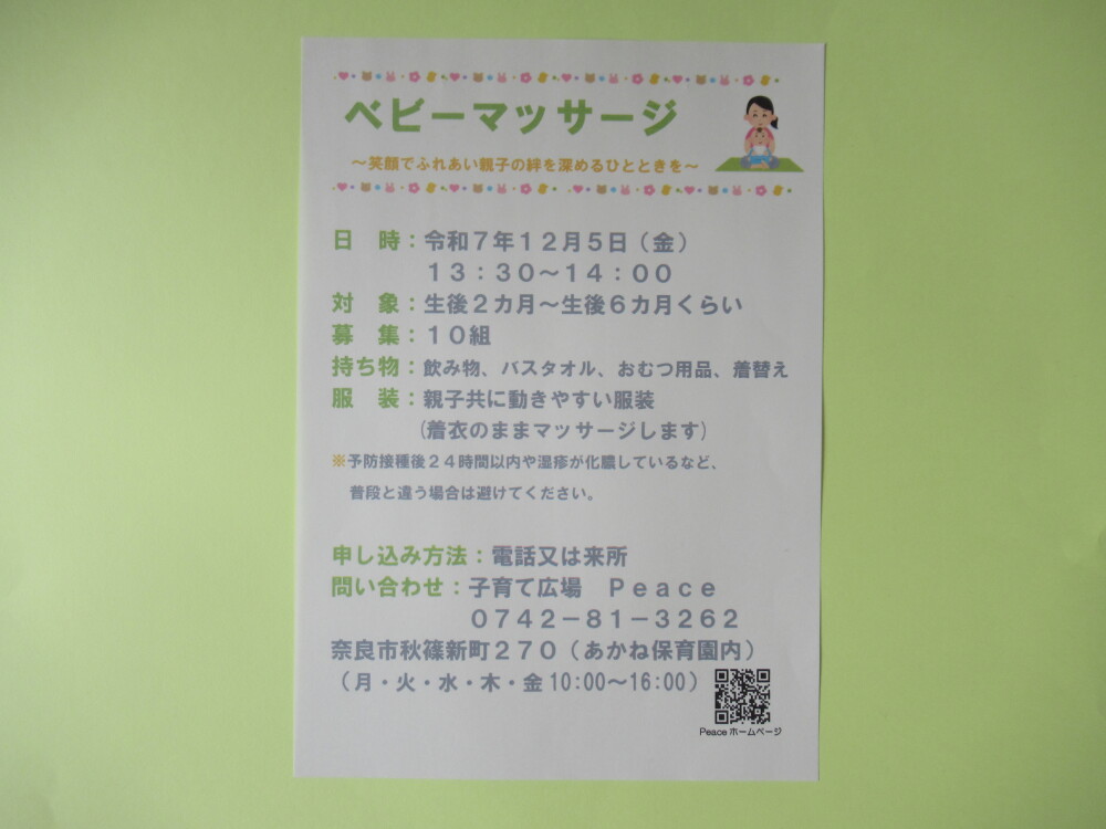 12月5日(金)「ベビーマッサージ」参加申し込み受付中です。