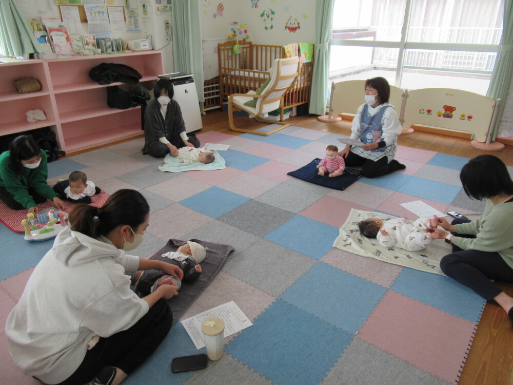 赤ちゃんたちは、ママの歌に耳を傾けながら、気持ち良さそうにマッサージされていました♪