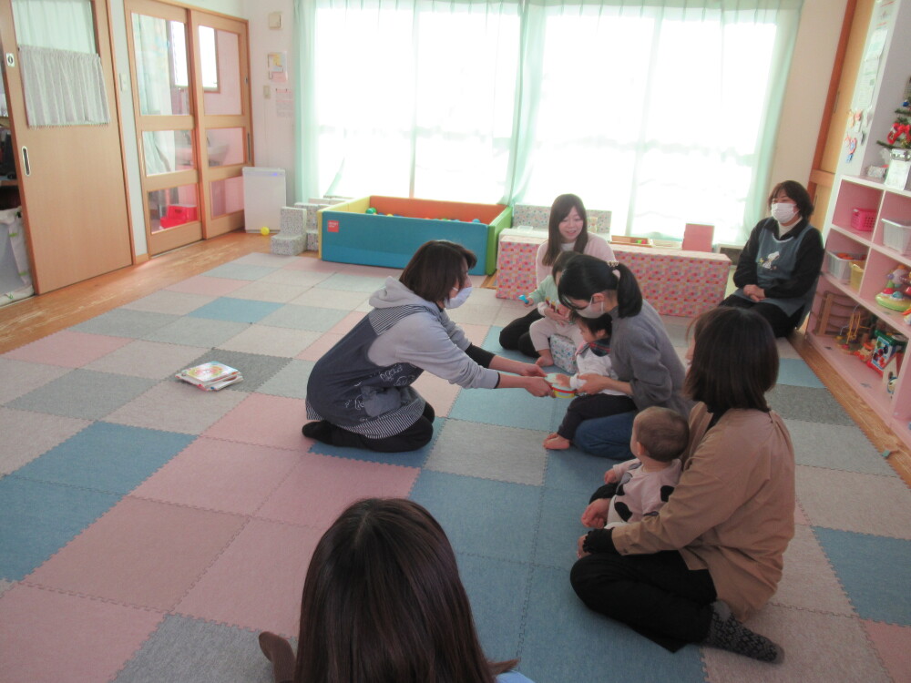 後半のわらべうたも、ママやパパの膝で楽しそうに揺れていました。