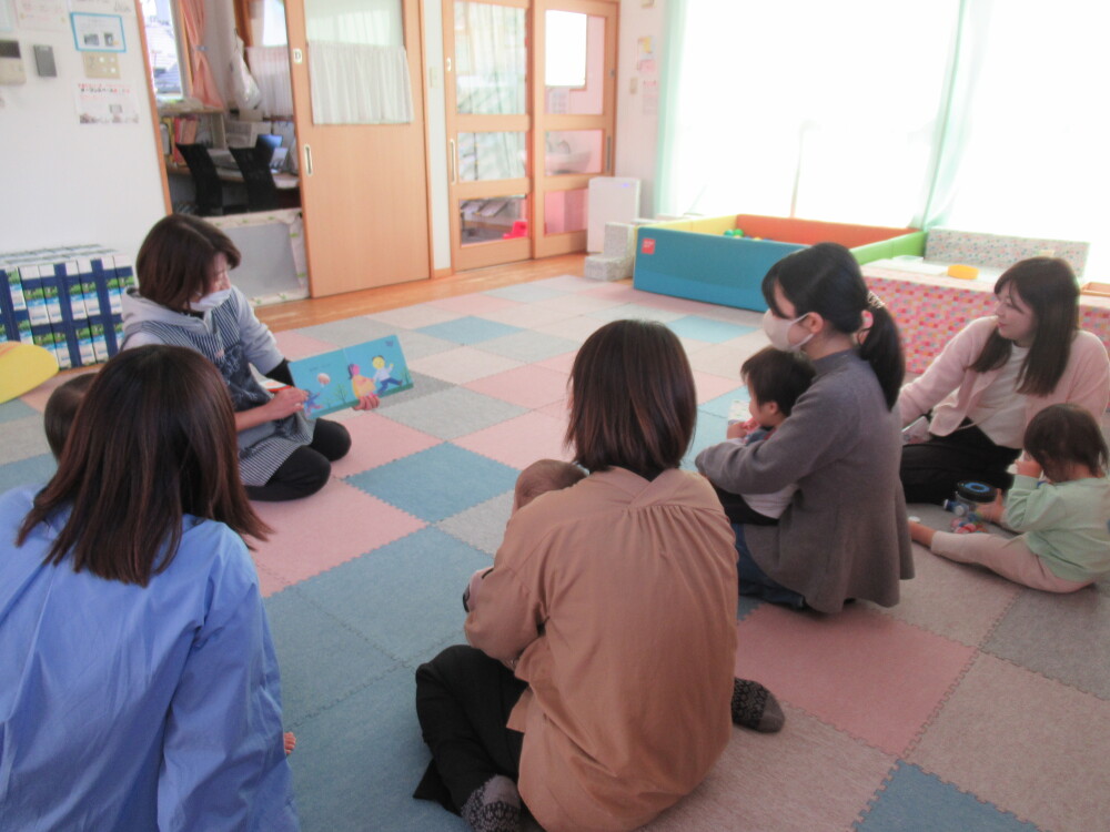 写真には、皆さんが楽しそうに絵本を見ている姿が写っていました。