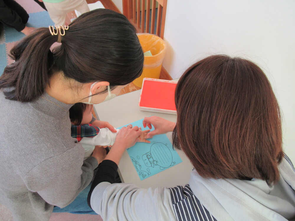 体重を測り、手形を押して、バースデーカードを作ってプレゼントしました。
