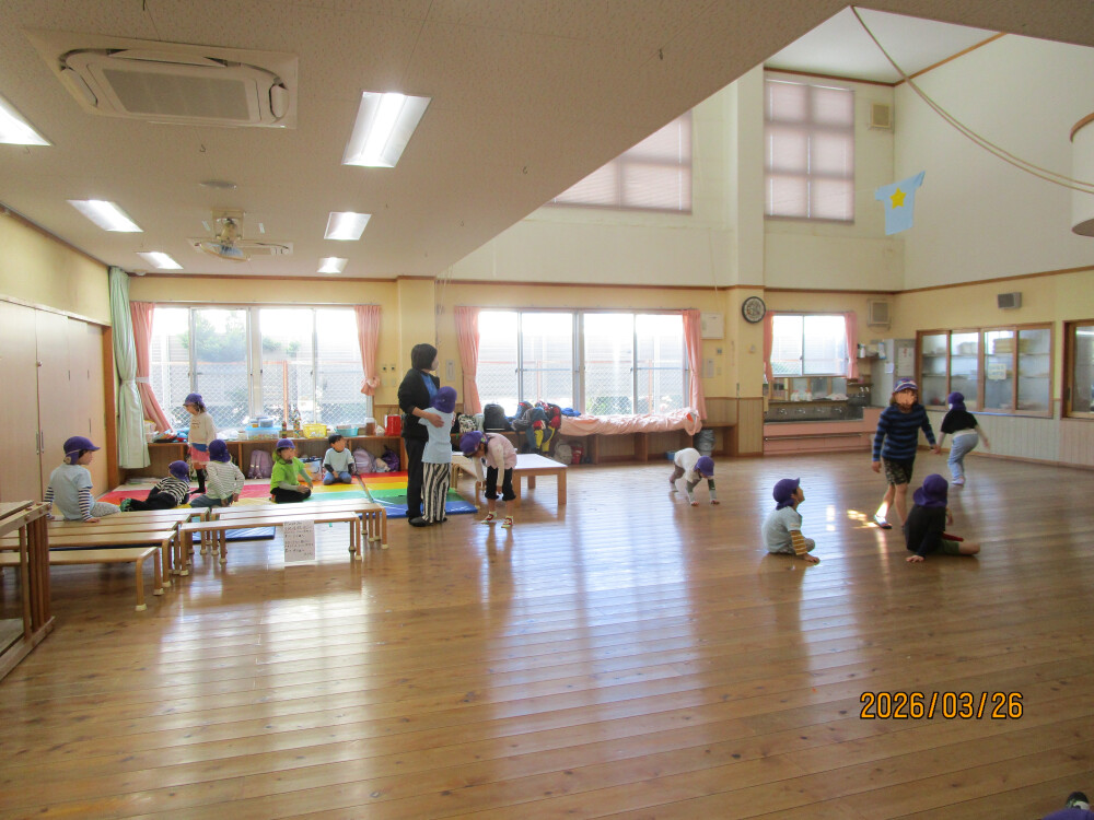 卒園式が終わりましたが、3月31日まで年長児さんはホールの仮住まいとなりますが、オープンスペースで過ごします。それもなかなか楽しいようです❁