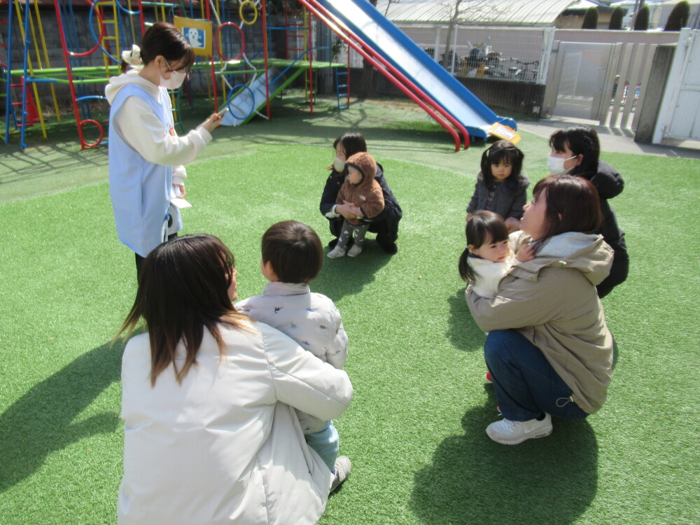 初めての就園で、分からないことだらけということもあり、皆さん一生懸命お話を聞いておられました。