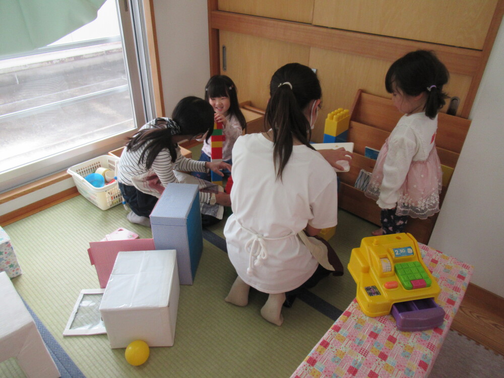 お姉さんが大好きな、もうすぐ4歳になる女の子たちが、大喜びで、絵本を読んでもらったり遊んでもらったり