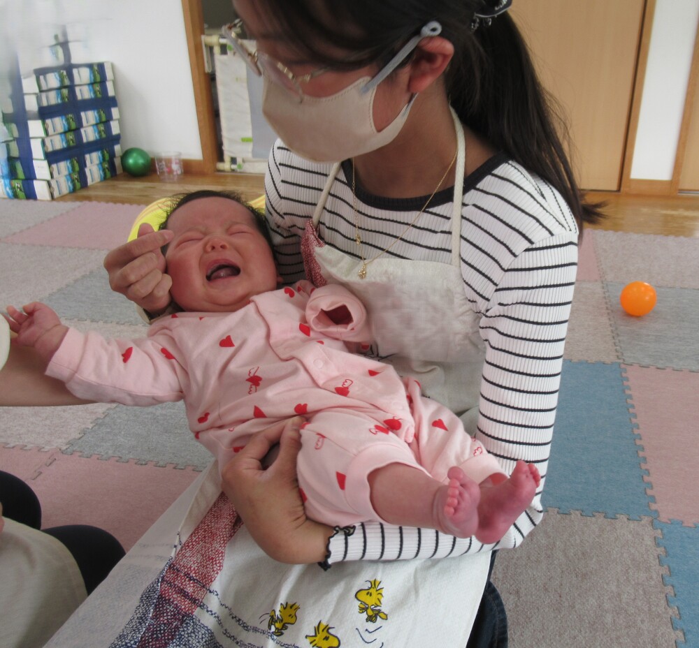 せっかくなので、2ヵ月、6ヵ月、1歳7ヵ月の赤ちゃんの抱っこ体験してもらいました。