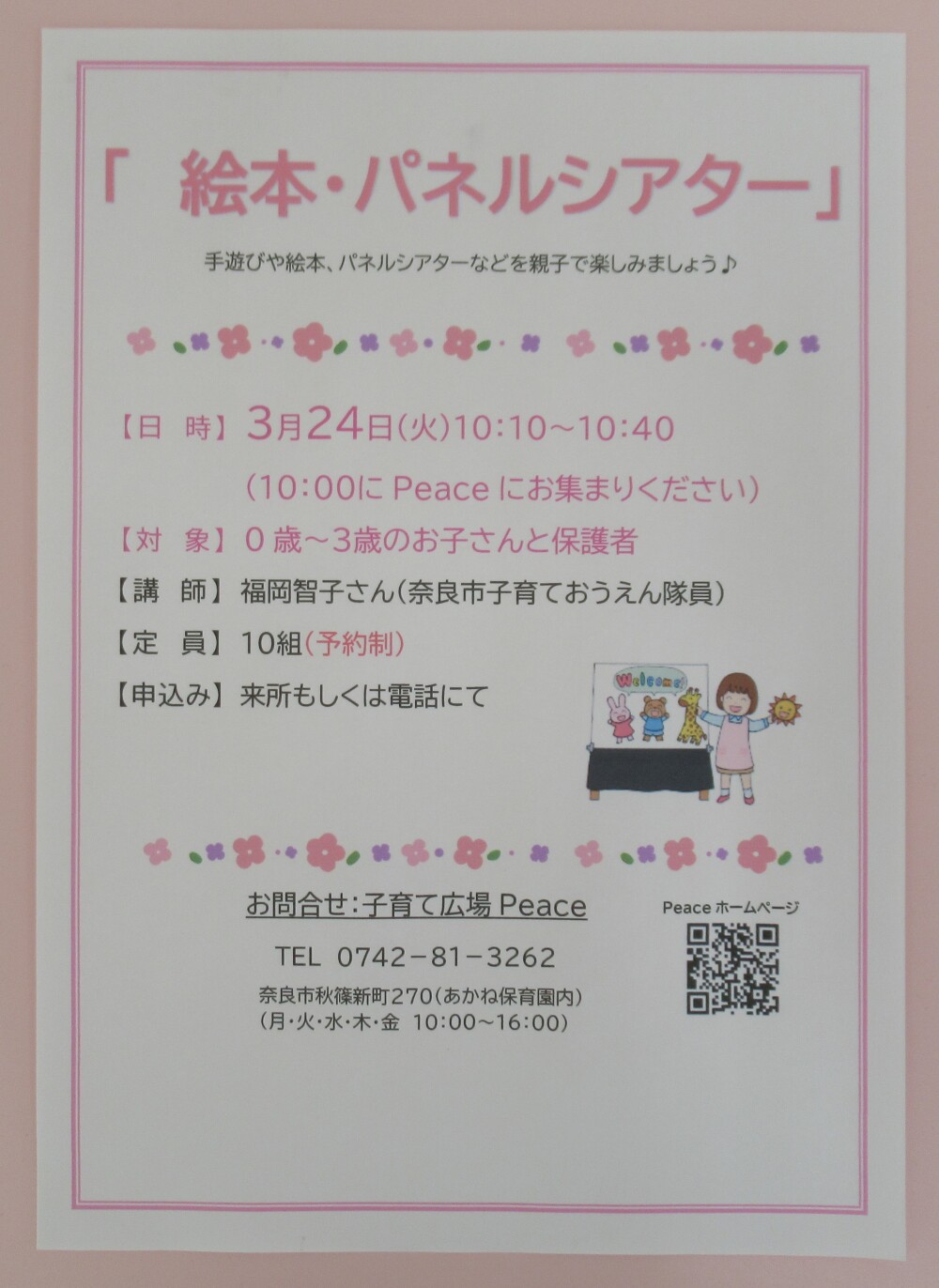 3月24日(火)「絵本・パネルシアター」の講座について